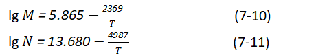 式中,C為溶液中 NH3的濃度,molNH3/100molH2O;S為溶液中SO2的濃度,45-molso2/100molH2o;m、n為經驗系數。m、n的值在工業應用范圍內僅依溫度的變化而變化: