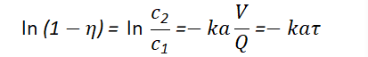 式中, C1、C2為尾氣中NO2進塔、出塔濃度,kmol/m3;;η為吸收效率;k為傳質系數,kmol/m3;Q為處理氣量,m3/s;V為自由空間容積,m3;a為填料比表面積,m2/m3τ為接觸時間,s。